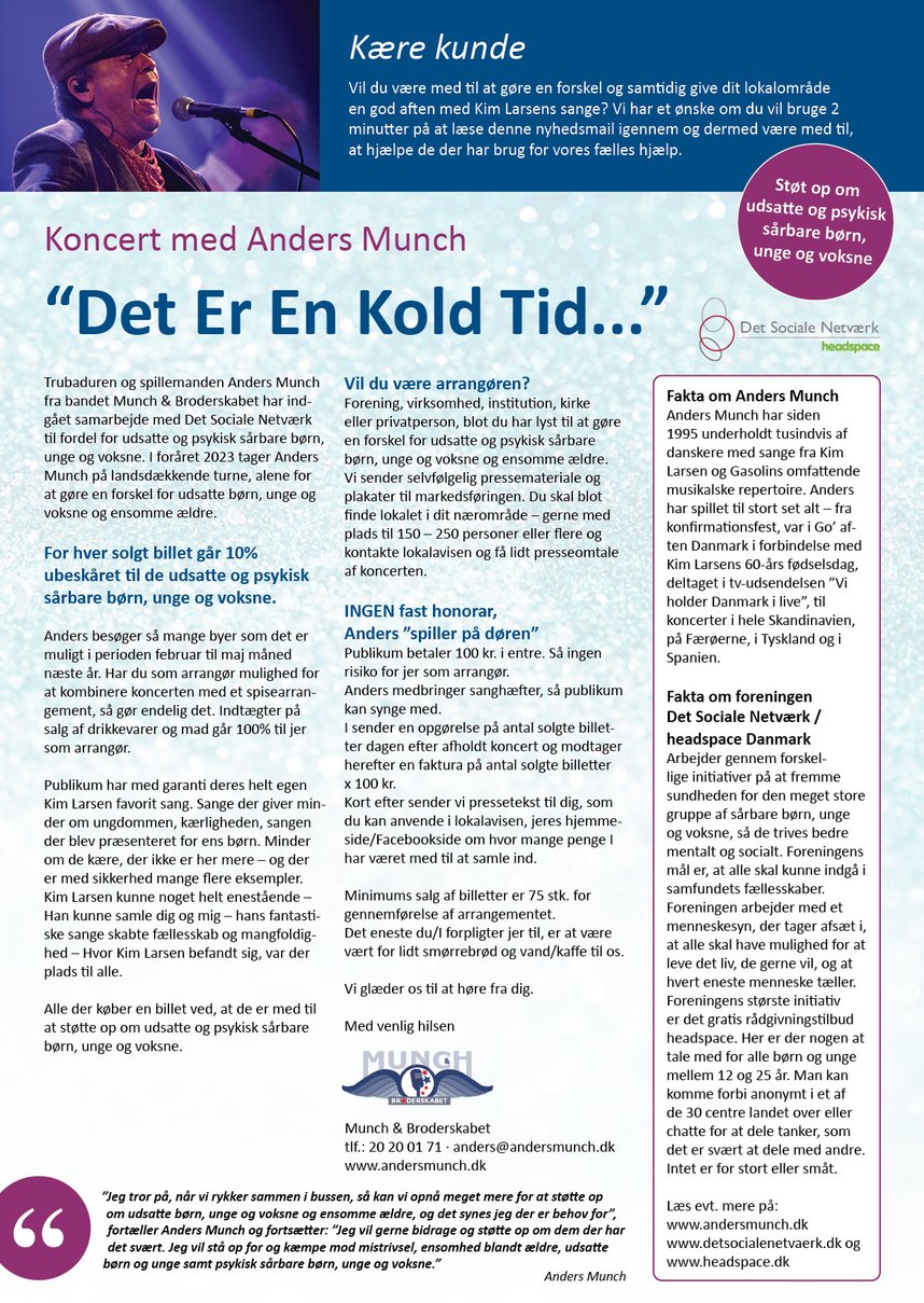 Vil du være med til at gøre en forskel og samtidig give dit lokalområde en god aften med Kim Larsens sange? Vi har et ønske om du vil bruge 2 minutter på at læse denne nyhedsmail igennem og dermed være med til, at hjælpe de der har brug for vores fælles hjælp…